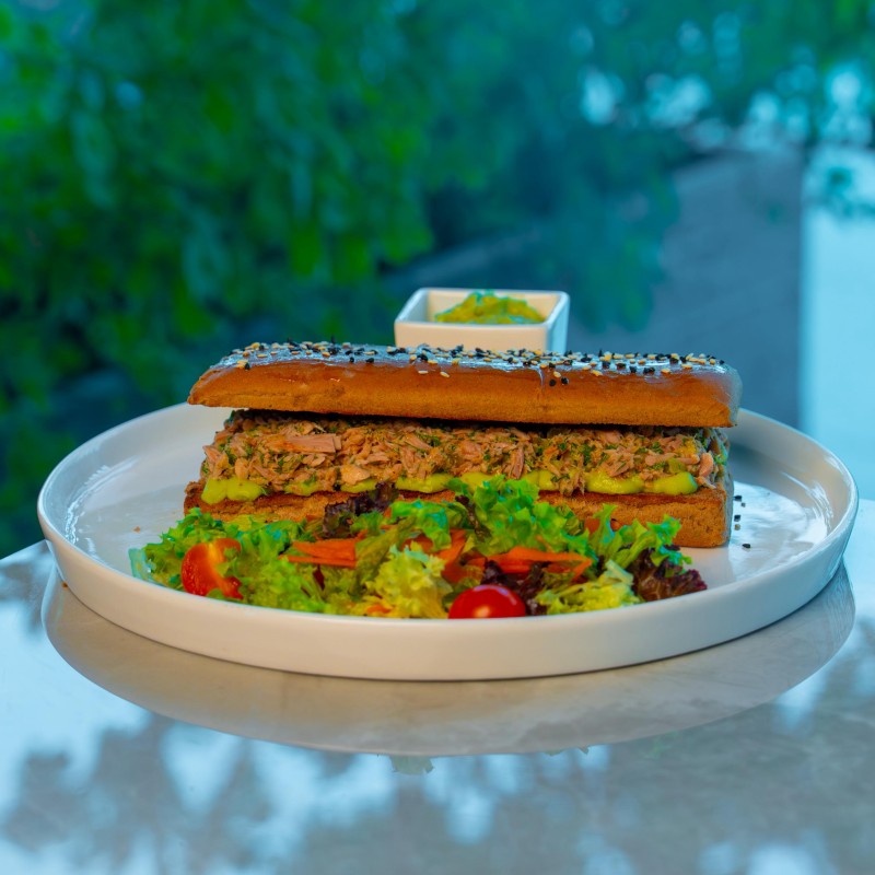 خبز تشياباتا الطازج محشو بخليط تونة لذيذ، أفوكادو كريمي، ولمسة من الليمون — خفيف، شهي، ومليء بالنكهات.