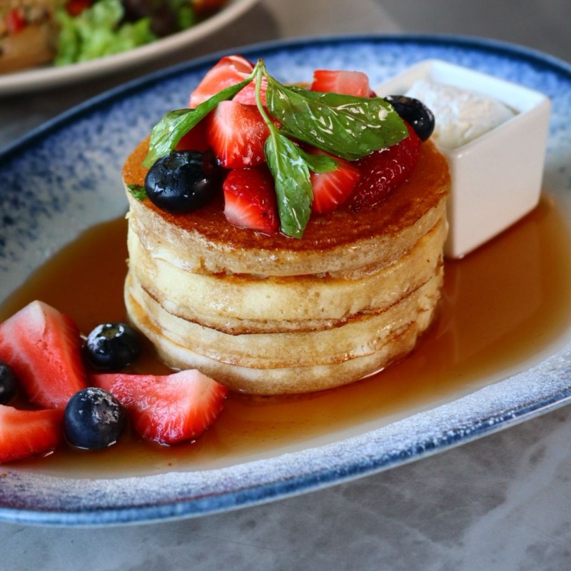 بانكيك هش يُقدَّم مع الزبدة والعسل أو شراب القيقب.